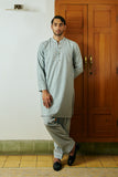 Olive green, raw silk waistcoat, with embroidered floral patterns. Detailed with sequins, tilla and cutdana embellishment.