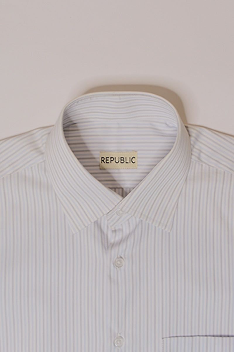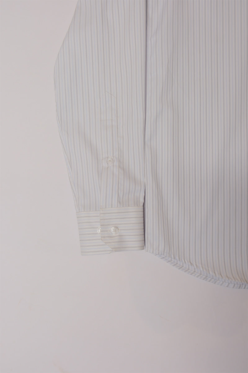 A striped cotton button down detailed with a straight pointed collar.
