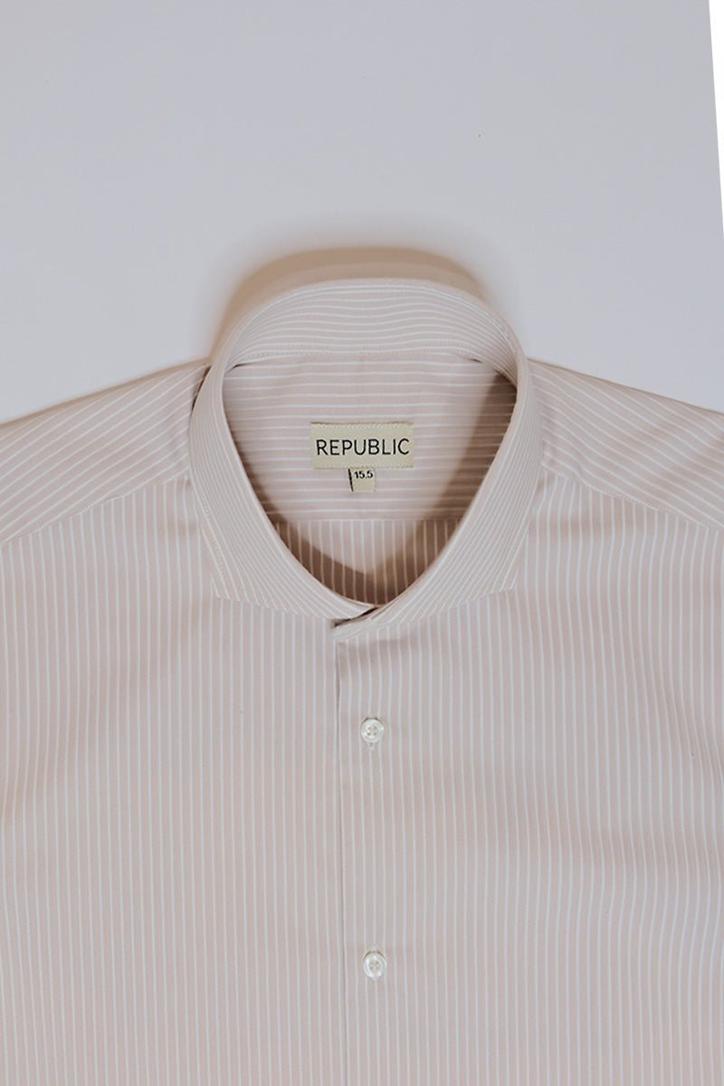 A pinstriped button down detailed with round pointed collar in an airy cotton fabric.