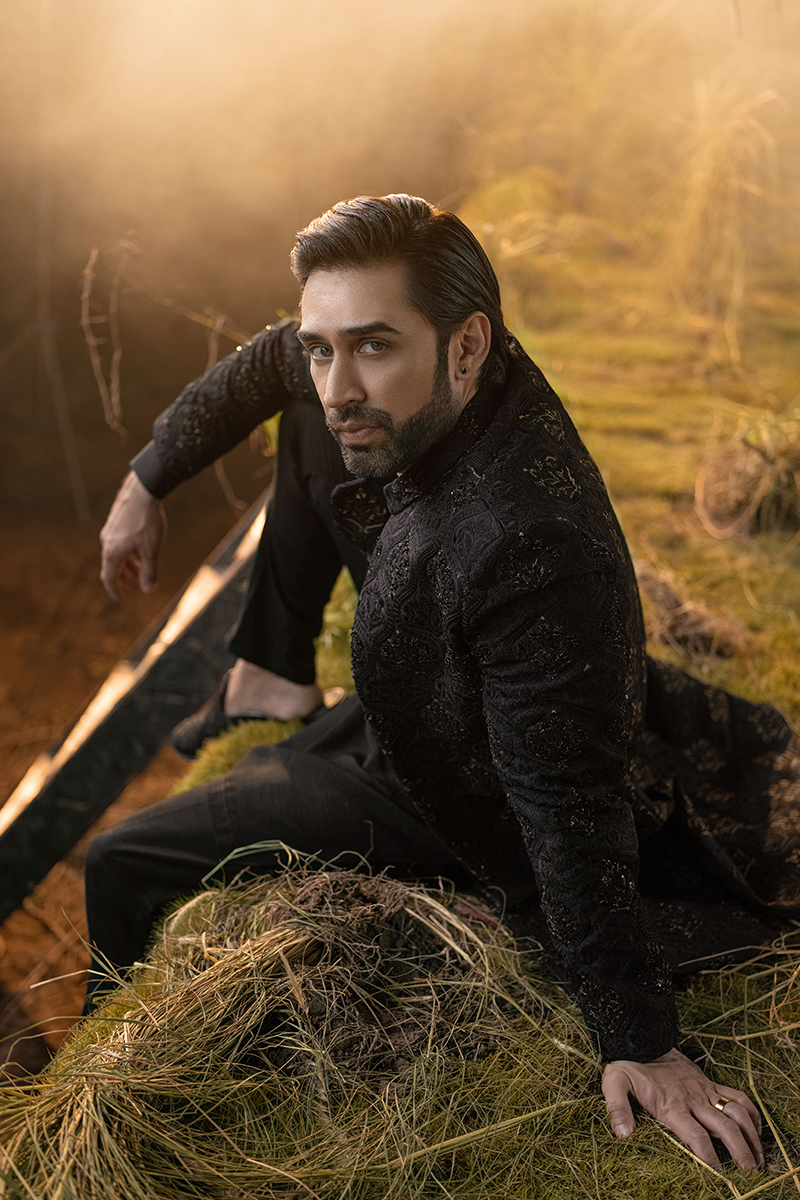 BLACK FLORAL SHERWANI